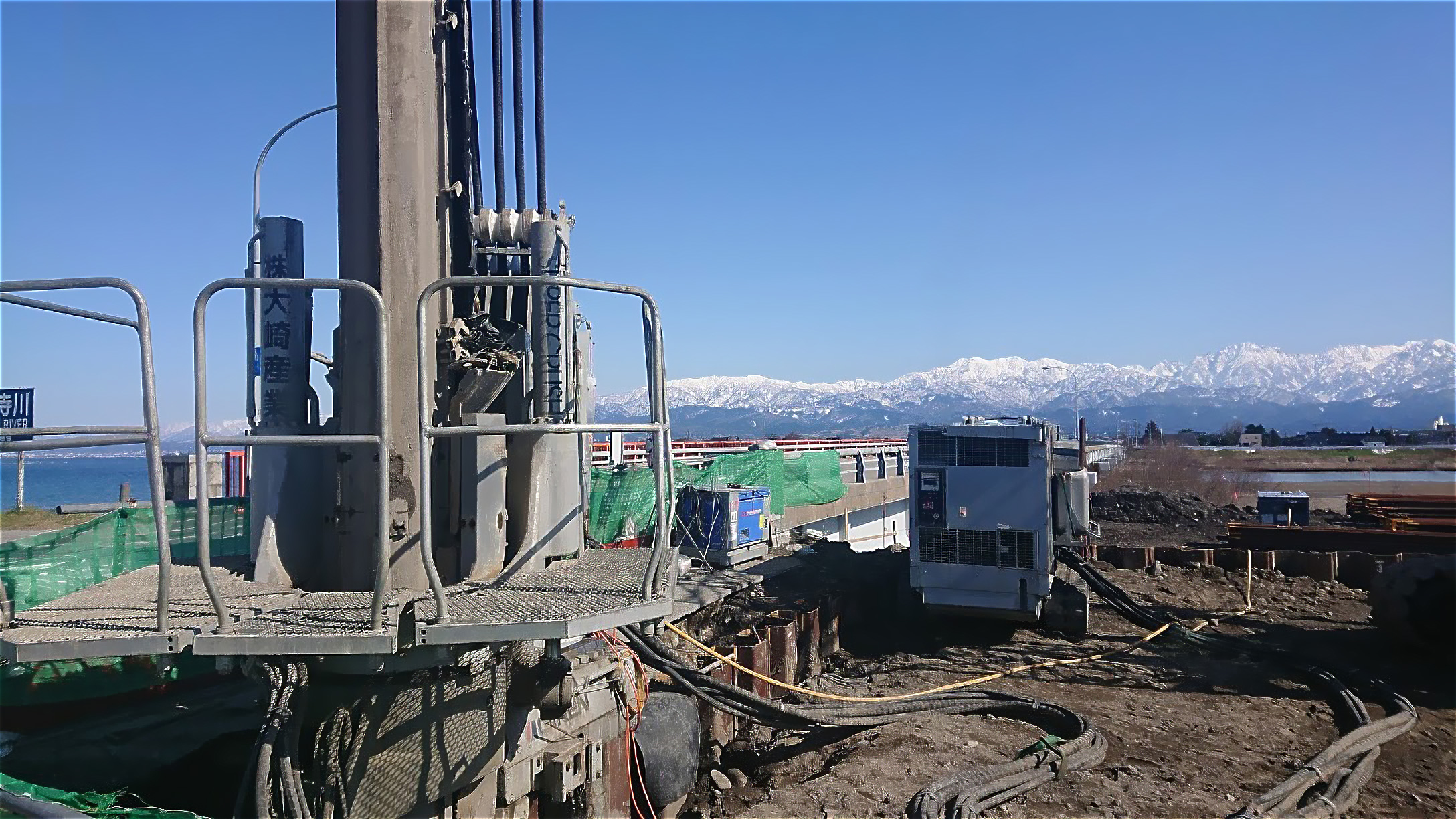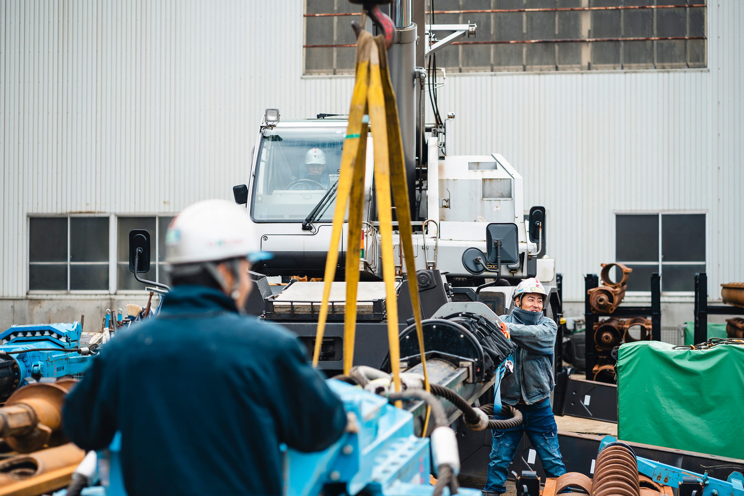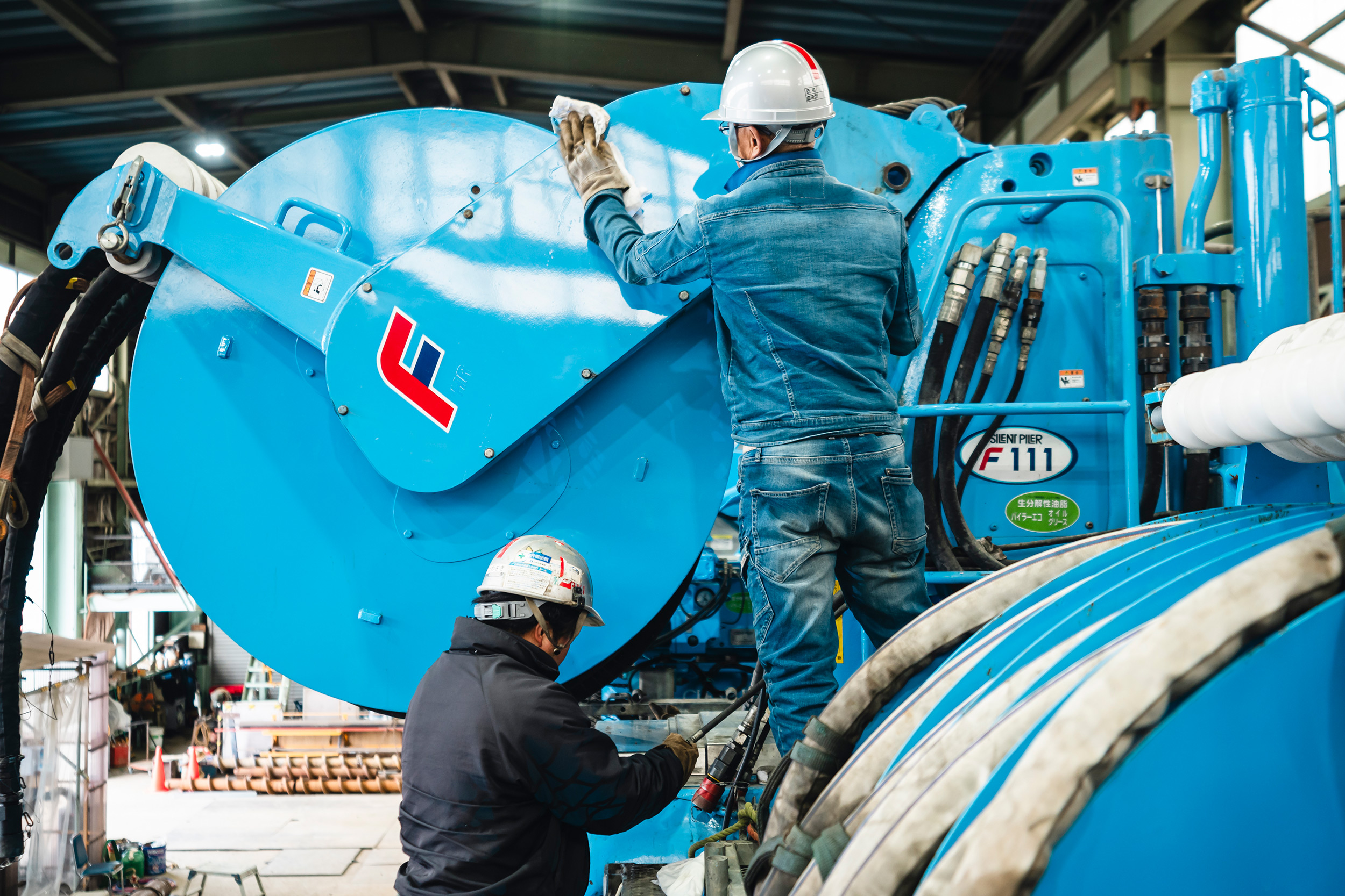 基本的には、地面の中(見えない所)に打ち込む事がメインの仕事となる為、苦戦をしいられる時もあります。しかし、それらを乗り越えて達成した時の充実感・達成感は計りしれません。私たちは、この鋼矢板を打ち込む仕事のスペシャリストです。